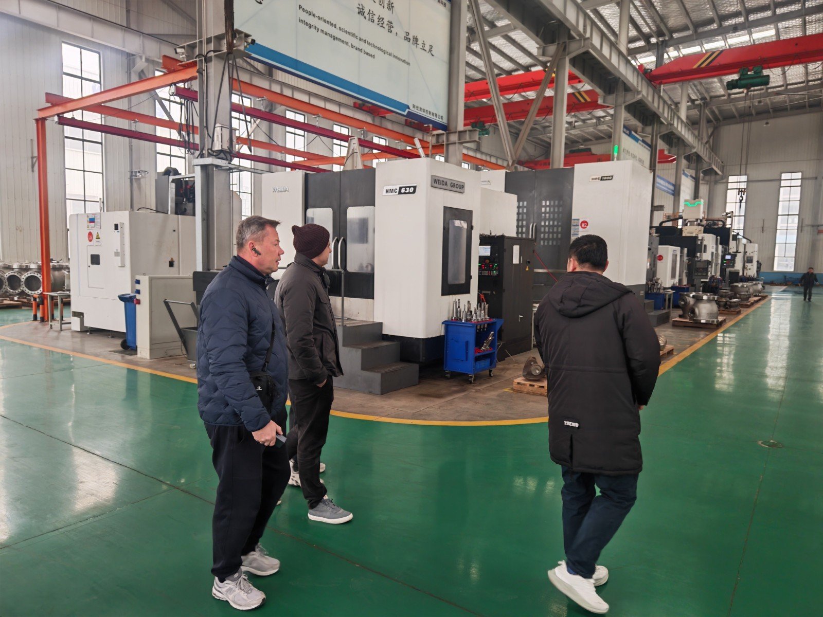AFA公司董事长谢正泽和技术部、销售部、生产部、质量部等部门负责人接待了来访客人并参加了技术交流。谢正泽董事长向客人介绍了AFA公司发展经历、生产运行、市场开发和远景规划等情况,亲自陪同客人参观了公司各生产车间机加工、球体加工、喷涂、研磨、装配、试压、最终检验、涂装发货等主要工序过程以及加工制造过程中的半成品和生产完成的阀门成品。